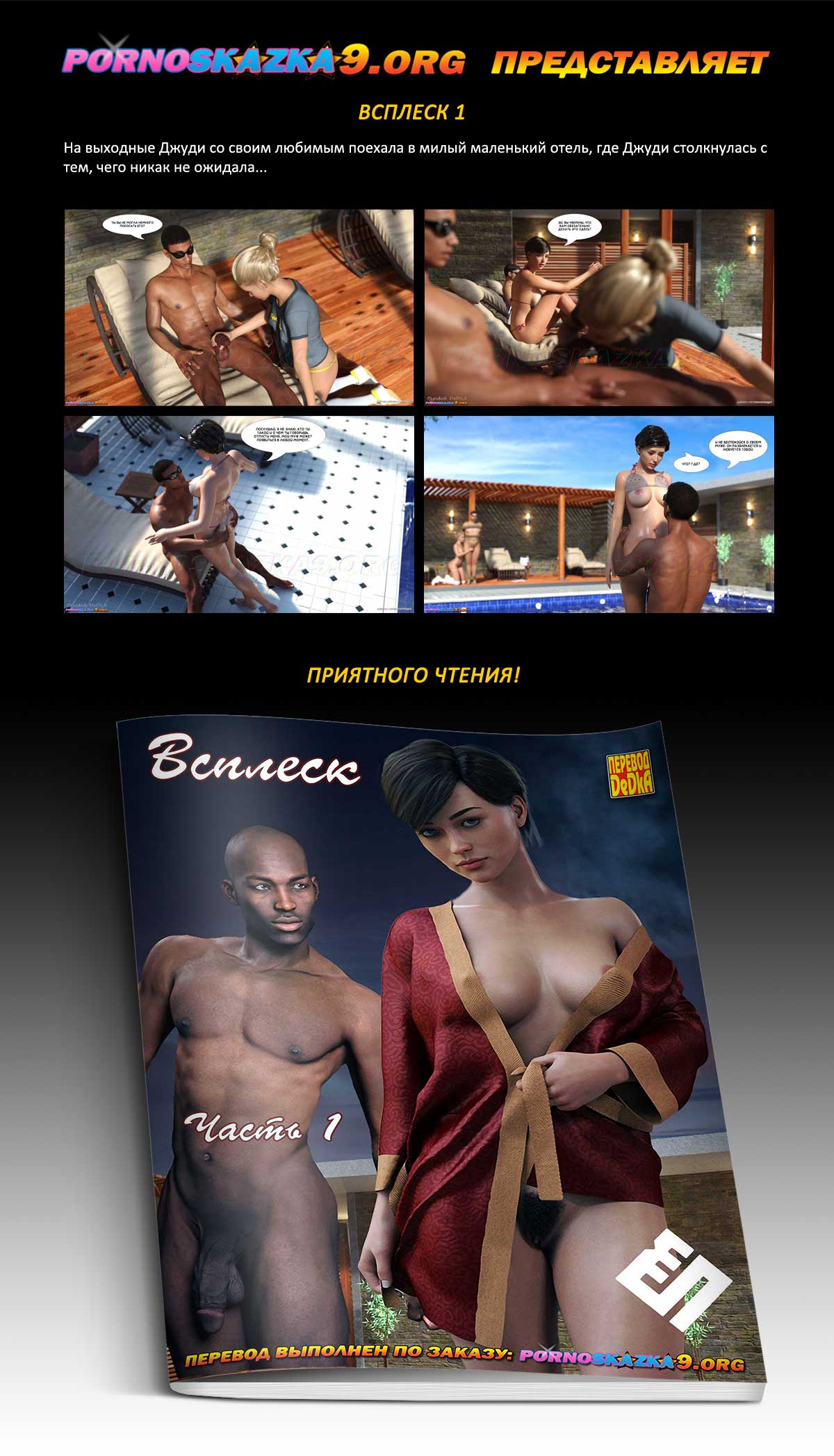 Порно комикс «Всплеск. Часть 1.» На выходные Джуди со своим любимым поехала в милый маленький отель, где Джуди столкнулась с тем, чего никак не ожидала…